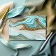 This design set, with it's abstract pattern of flowing ripples and veins of glittering gold, brings to mind eye-catching rock formations, flowing sand dunes, and gentle ocean waves. The striking colours of sea and sand for this set adds to the appeal. The guest book shown here has all the above with a layout that makes it stand out from the crowd. Easily add your initials and wedding date using the provided template. Search ID903 to see other colour choices and coordinating pieces for this unique wedding collection.