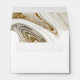 This wedding design set, with it's abstract pattern of flowing ripples and veins of glittering gold, brings to mind eye-catching rock formations and sparkling gems. The neutral colour palette in shades from champagne to soapstone adds to the appeal. The coordinating envelope shown here has all the above with an abstract interior and optional ivory exterior. Easily add your initials and address using the provided template. Search ID903 to see other colour choices and coordinating pieces for this unique wedding collection.