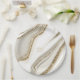 This wedding design set, with it's abstract pattern of flowing ripples and veins of glittering gold, brings to mind eye-catching rock formations and sparkling gems. The neutral colour palette in shades from champagne to soapstone adds to the appeal. The coordinating paper plate shown here has an abstract background and your initials and wedding date. Search ID903 to see other colour choices and coordinating pieces for this unique wedding collection.