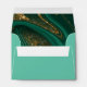This wedding design set, with it's abstract pattern of flowing ripples and veins of glittering gold, brings to mind eye-catching rock formations and sparkling gems. The jewel-toned colour palette in shades of emerald green adds to the appeal. The coordinating envelope shown here has all the above with an abstract interior and optional light green exterior. Easily add your initials and address using the provided template. Search ID903 to see other colour choices and coordinating pieces for this unique wedding collection.