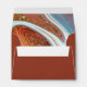 This wedding design set, with it's abstract pattern of flowing ripples and veins of glittering gold, brings to mind eye-catching rock formations and Southwestern landscapes. A colourful palette in shades from rust, and terra cotta through sky blue adds to the appeal. The coordinating envelope shown here has all the above with an abstract interior and optional rusty red exterior. Easily add your initials and address using the provided template. Search ID903 to see other colour choices and coordinating pieces for this unique wedding collection.