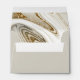 This wedding design set, with it's abstract pattern of flowing ripples and veins of glittering gold, brings to mind eye-catching rock formations and sparkling gems. The neutral colour palette in shades from champagne to soapstone adds to the appeal. The coordinating envelope shown here has all the above with an abstract interior and optional stone exterior. Easily add your initials and address using the provided template. Search ID903 to see other colour choices and coordinating pieces for this unique wedding collection.