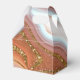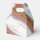 This wedding design set, with it's abstract pattern of flowing ripples and veins of glittering gold, brings to mind eye-catching rock formations and Southwestern landscapes. A colourful palette in shades from rust, and terra cotta through sky blue adds to the appeal. The wedding favour box shown here has all the above with template to easily add your initials and wedding date. Search ID903 to see other colour choices and coordinating pieces for this unique wedding collection.