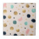 This seamless abstract pattern ceramic tile features a dynamic mix of textured gold dots and shimmering brushstrokes, paired with playful accents in teal, pink, and dark blue. Set against a soft, neutral background, the design exudes a modern, artistic vibe with a hand-drawn, expressive feel. Perfect for bold, creative aesthetics with a touch of elegance and sparkle.