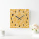 Abstract Golden Yellow White Contemporary Pattern Square Wall Clock