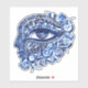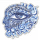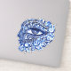 An illustrations of an abstract Greek evil eye and Greek key within a face. Which is the Greek and Turkish symbol of protection.
