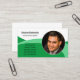 This professional card features an abstract green and white background with all text on the front. A blank white back leaves room for handwritten notes. Personalise the text fields, remove text or customise it to select a font style, size, and colour you prefer. Replace the photo with yours. A square photo works best. You can also add this design to the business card magnet or one of the other products, where it fits appropriately, shown in the TRANSFER scroll bar on this page.
