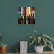A poster with real gold foil and an abstract painting of human silhouettes in a variety of colours. A beautiful print in reds, blue tones, orange and green.