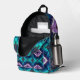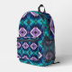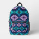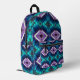 This gemstone-patterned backpack features a mirrored kaleidoscope of jewel-toned shapes in lavender, lilac, turquoise, and deep sapphire blue, woven together in a mesmerising abstract IKAT-inspired print.