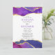 Abstract smoke ink in fuchsia pink, purple, and gold colours wedding invitation with purple font on first names.