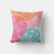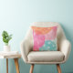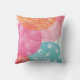 This pretty watercolor abstract patterned pillow with splashes of pink, blue and orange spots and triangles, makes a lovely addition to kids room.