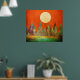 Abstract Landscape Full Moon Mountains Orange Sky Poster