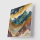 Abstract Landscape Painting Gold Rust Blue Square Wall Clock