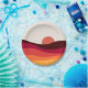 Abstract colourful seascape illustration with red and orange waves, sandy beach and sunset decoration fir everybody who love nature and simple abstract seascape.