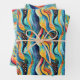 Abstract Landscape with Vibrant Waves and Playful Wrapping Paper Sheet