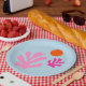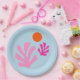 Abstract Leaves Pink And Blue Shapes Cut Outs Paper Plate