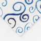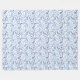 S curves, U's, and other scrolling shapes create a blue on white abstract pattern that is a fun handmade element on this blanket.