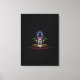 This stretched canvas print features an abstract design of colourful light trails. The trails form a symmetrical pattern with a central focal point. The background is black, making the colours pop. The colours of the trails are blue, red, green, and yellow. The trails appear to be made of thin lines, creating a delicate and intricate design. This print would make a great addition to any modern or abstract art collection. It is made of high-quality canvas material that is stretched over a wooden frame. The print measures 12 x 12 inches and is ready to hang on your wall. This print is perfect for anyone who loves art and colours, and it can brighten up any room with its vibrant and creative design.