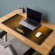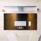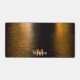 Abstract lights sea shiny bronzed Monogram Desk Mat. Unique cool desk mat for office, room, work, workshop, gaming room.. Personalise with your custom initial and name. Photo of sparkly glistening night lights sea reflection in black and gold bronze shiny colours.