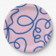 Abstract Line Art Retro Pink And Blue Paper Plate