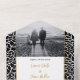 Introducing our Abstract Line Foliage All-in-One Invitation in Black, White & Aztec Gold Colour, meticulously crafted to enhance your wedding with unparalleled elegance. Set against a sleek black background, intricate foliage outlines in white create a mesmerising contrast that exudes timeless sophistication. The white text area, delicately framed in thin Aztec gold colour, adds a sophisticated touch to the design, while the bride and groom's names are elegantly calligraphed in Aztec gold colour for a personal touch. The remaining black text is presented in a classic serif font for clarity and sophistication throughout. Customise the text, image and QR-code to reflect your unique style. While using the edit link lets you adjust all colours. For more wedding planning inspiration, visit www.KBMD3signs.com. If you have any custom design questions or need assistance, please contact us at info@KBMD3signs.com.
