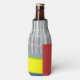 This bottle cooler has a design of broken black lines running vertically into rectangles of light blue, green, blue, yellow, and red. Want different colours? Message me.