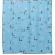 Retro shower curtain with pastel pink stars and black abstract lines pattern on light blue background. This mid century modern design can be customised to match your decor by changing the background colour. To do so click Customise It then pick from the colour swatches.