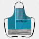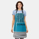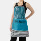 This apron has a geometric design of a large teal rectangle in the upper left corner, darker teal stripes in the upper right corner, a lighter smaller teal rectangle below the stripes, and black lines across the bottom. If you like the design but prefer different colours, message me.