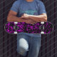 An Skateboard with a modern abstract design made up of randomly placed vector lines which create an interesting abstract composition reminiscent of some kind of structure or network.