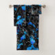 Abstract looking bat wings over stained turquoise bath towel set