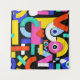 Colourful abstract pattern with word love inside, eyes, tears, colour blocks. Pattern illustration with bright colour-blocking shapes. Trendy colourful pop art geometric pattern with bold shapes on black.