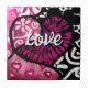 Abstract Love Heart Pink Floral Polka Dots Black Tile