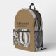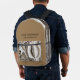 This backpack is especially geared towards the adults who prefer to carry a backpack to work, rather than a briefcase or satchel. Young adults in college are apt to be drawn to it too for it's very unique, sophisticated look. The roomy pocket on the front has an abstract marbled swirl pattern in black, tan, grey and white, and the sides of the backpack are also done in that pattern. The front portion of the backpack is done in a dark tan and there is a template for you to put your name and business title on above the pocket. If you choose not to have your name on the backpack, just delete what is on the template. Each line of typography has a separate template so you can change either one or both to suit your needs.