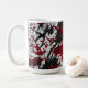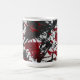 Expressive acrylic abstract painting in red and black brushstrokes.