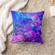 Throw Pillow of abstract design with a mermaid under the sea surrounded by sea creatures in colors of pink, blue and purple.
