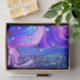 Craft/Tissue paper of abstract design with a mermaid under the sea surrounded by sea creatures in colors of pink, blue and purple.