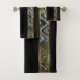 Abstract Metallic Gold and Blue Waves on Black Bath Towel Set