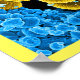Photo produced by the National Institute of Allergy and Infectious Diseases (NIAID), under a magnification of 20,000X, this digitally-colourized scanning electron micrograph (SEM) depicts a number of mustard-coloured, spheroid-shaped Staphylococcus aureus bacteria that were in the process of escaping their destruction by blue-coloured human white blood cells (WBCs). Add custom text to personalise this item.