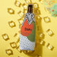 This bottle cooler has a mid-century modern design of curvy and zigzag lines in black, circles in yellow, orange, and green, and a rectangle made from dashed teal lines. If you want the same design with different colours, message me.