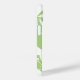 This phone case is designed with light green abstract shapes on a white background, with white leaves and dots on top. This item also features a section in the centre that you can customise with your own name, or with the name of a friend or family member to give this item as a gift.