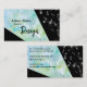 ** Here you have a pretty sweet yet elegant popular modern cool trendy chic and feminine as well as masculine, black and a pretty turquoise blue water colour flower image as part of a black and the turquoise black colour block business card that also has touches of glitter and sparkle. The font is black which really pops overlaid on the floral flower chunk of geometric sections. The card states the profession as " Graphic Artist" which can be easily converted and customised with your name and profession.**