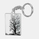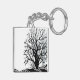 Abstract modern black tree silhouette shadow white key ring