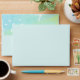 Abstract brush stroke technique in beautiful colours turquoise, blue and lime with custom modern return address in elegant serif font on a back flap