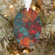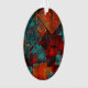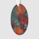 Abstract Modern Colourful Cool Artistic Pattern. Red Orange Blue Squares Abstract Art Acrylic Oval Ornament.