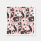 This design features an abstract pattern constructed of hand drawn eyes and lips on a pink background.