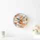 The clock did not take as long to arrive as I thought it might and was extremely well packaged. I didn't do the measurements so I didn't realize it is a little smaller than the average clock but that does not matter (just make sure you check if that's important to you).It is really nifty! It seems very solid and well made not flimsy at all. It has been going well and has kept good time in its few weeks on my wall. Nice product. Gets noticed too! Nicer in real life than the picture but true to the picture