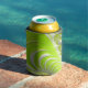 Abstract Modern Lime Green Spiral Fractal Can Cooler