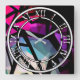Abstract modern polygonal graffiti geometrical dar square wall clock