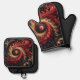 Abstract Modern Swirling Red, Black and Gold Oven Mitt & Pot Holder Set