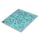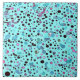 Modern abstract elegant pattern of black and pink dots and drops on a teal background.